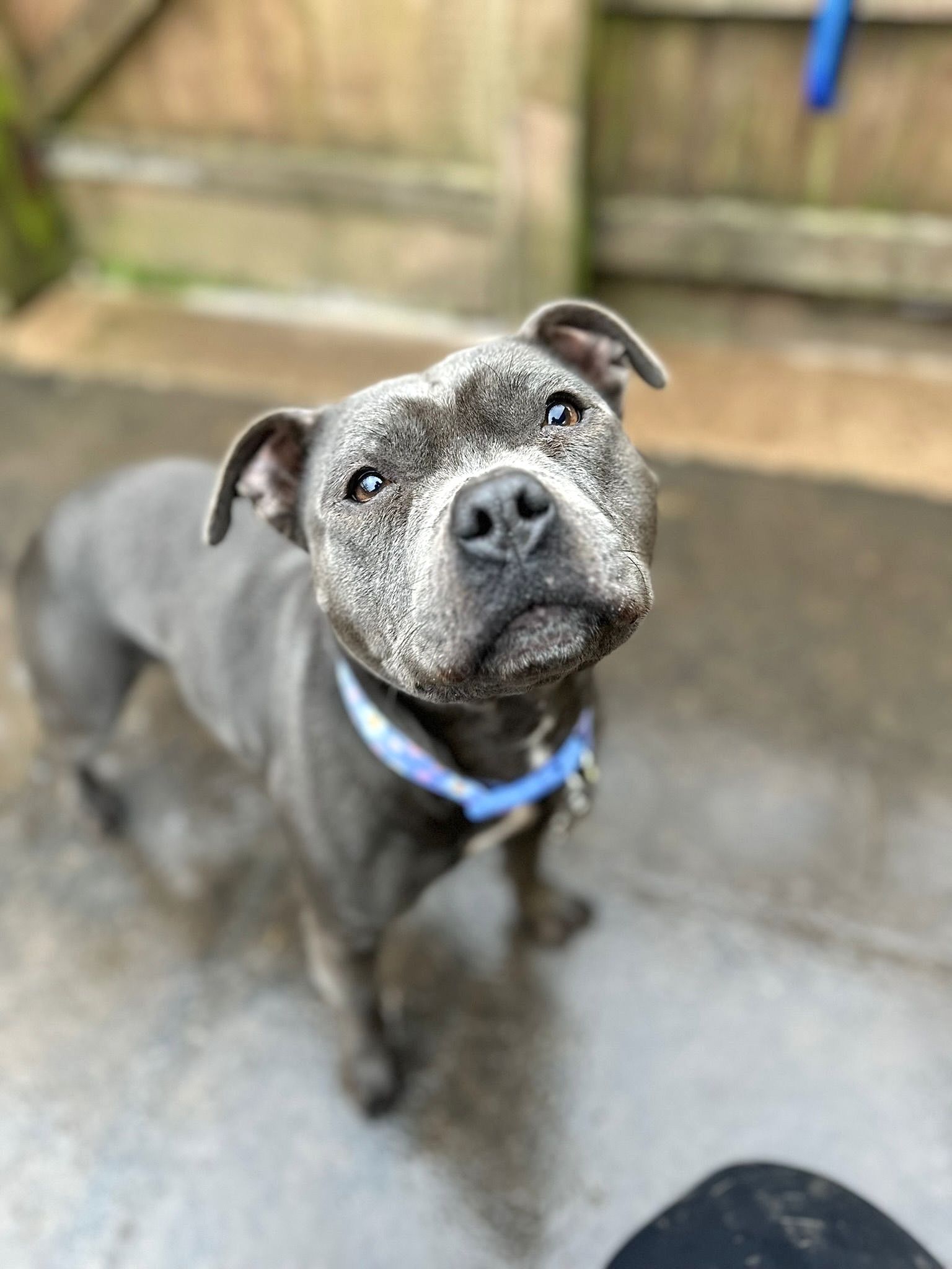 Abi is a true ray of sunshine and the happiest staffy we’ve ever encountered! She radiates joy and is excited to greet everyone she meets. When she first arrived, she was quite shy and confused, but it didn’t take long for her to realise that our sanctuary is a joyful place. She is now completely settled in. This sweet girl thrives on human interaction and, in our view, cherishes cuddles above all else! She truly is a cuddle monster who deserves the comforts of a loving home!