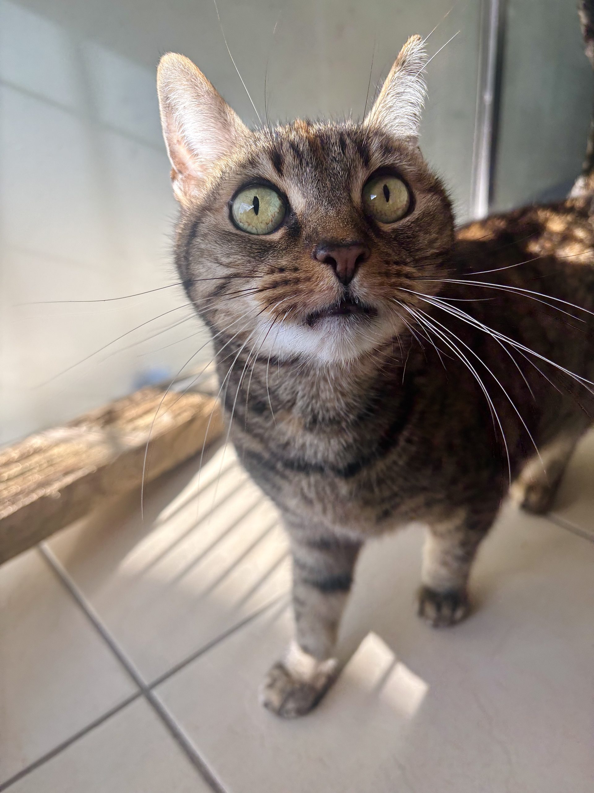 While Lois enjoys a bit of attention, she will clearly communicate when she has had enough. She would thrive in a cat-experienced home without children. Since returning to our cattery, Lois has adapted remarkably well, showing no signs of hiding or fear. She happily eats her food and is not a fussy eater, displaying quite a confident personality!