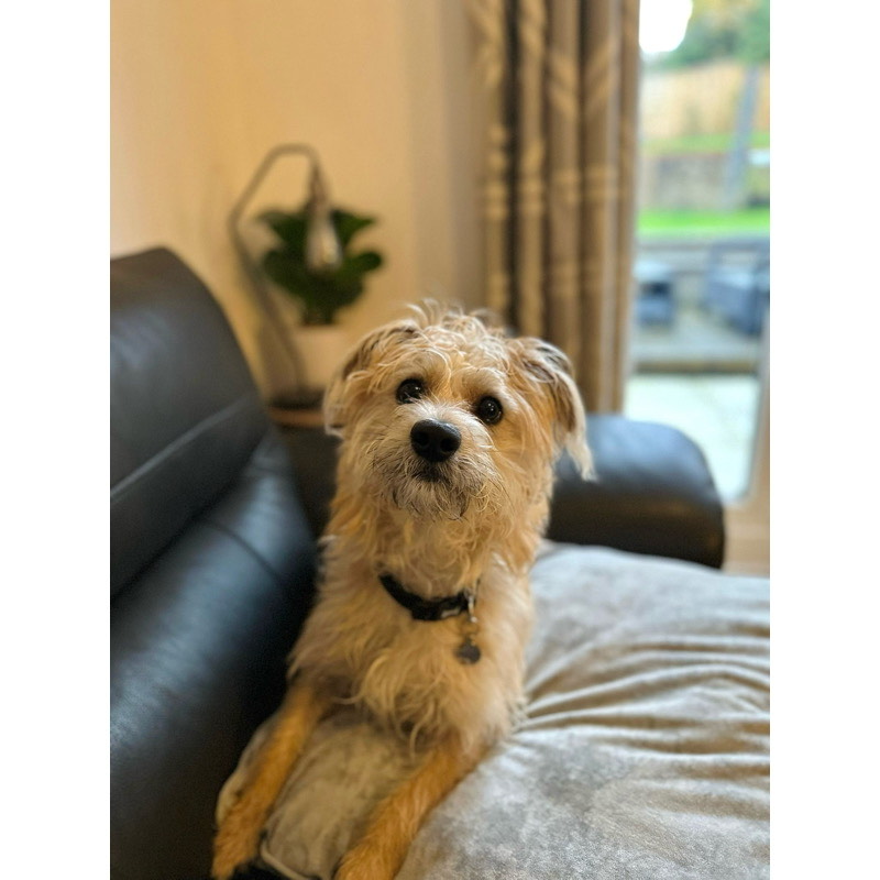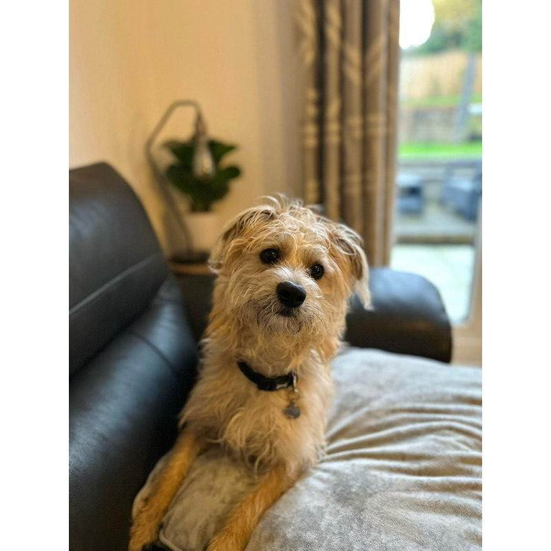 As a lively puppy, Muttley has abundant energy and would thrive in an active household, ideally with a family familiar with terriers. He loves playing with toys and has a charming personality.