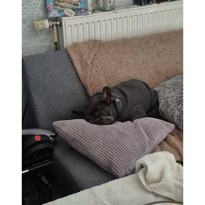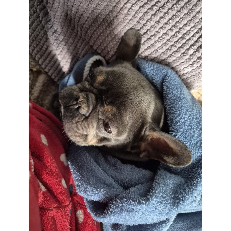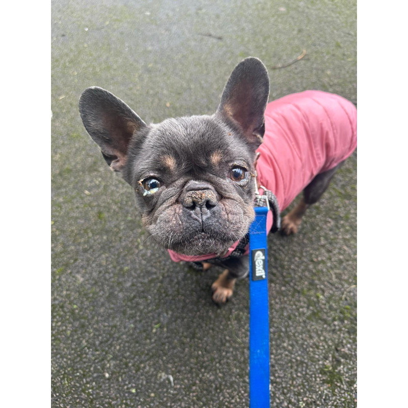 - Do I have any medical issues? Yes - Petal has undergone a comprehensive health check at the vet, which revealed the following: She is not classified as an urgent BOAS case, but surgery would enhance her quality of life. She is scheduled to have this surgery on the 20th January. Petal is also fully vaccinated. Next vaccination due: 9th January 2026. Petal is not spayed at this time, we will be seeking vet advise on this, after her BOAS surgery. Her hind legs have very little muscle, resulting in her being "top heavy". This can cause her to do handstands while eating or urinating. The vets have recommended that with appropriate nutrition and exercise, she can gradually rebuild this muscle. She also has grade 1 luxating patella's in both her hindlegs but apparently is is not a cause for concern and is not causing any issues right now. When Petal first arrived, she had a severe case of conjunctivitis, but it cleared up after receiving antibiotics. This is why her eyes may appear a bit gunky in some of her photos!