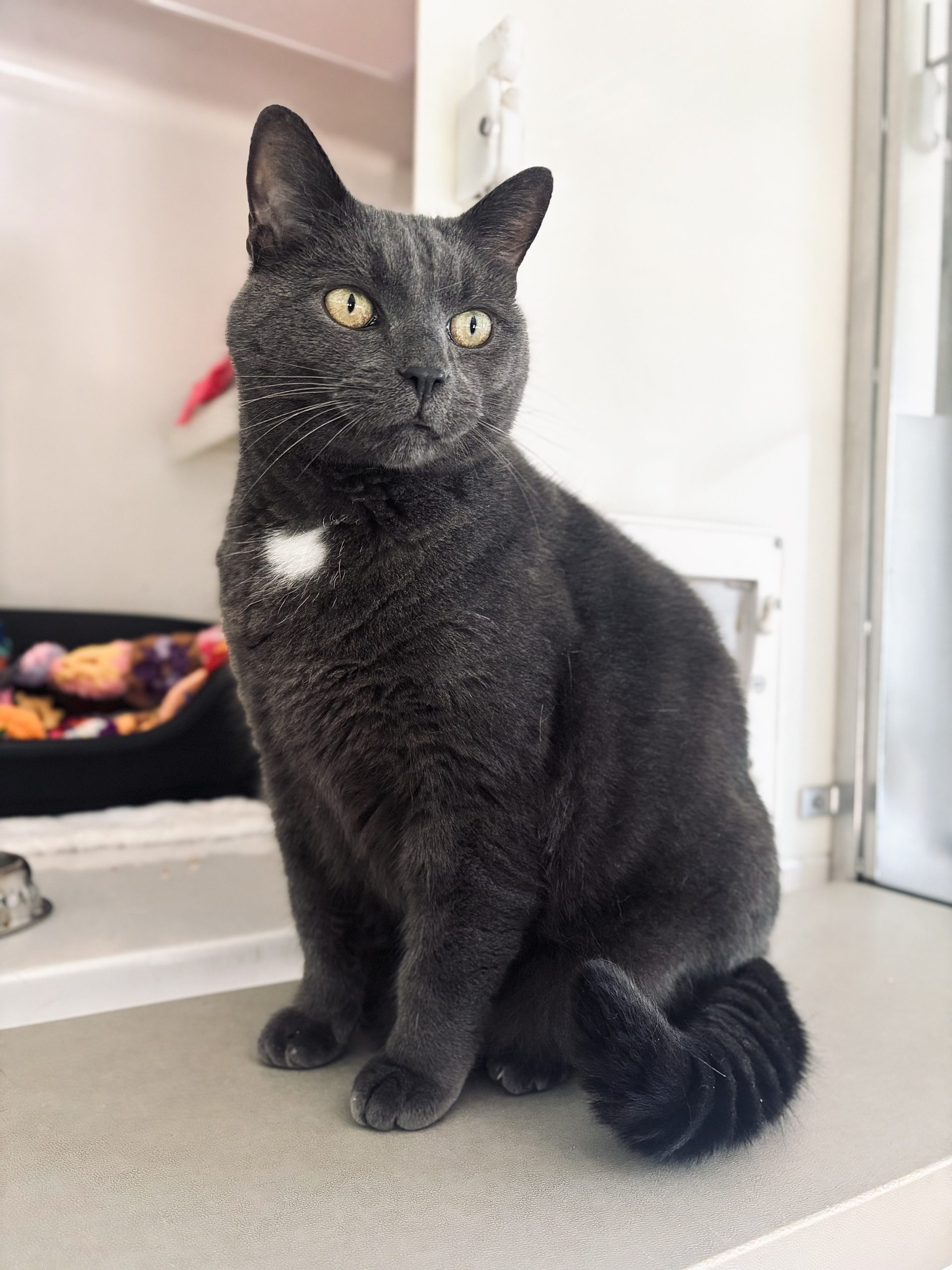 Tina is a strikingly large cat with a vibrant personality! Weighing well over 5kg, she is a mix of domestic short hair and British short hair, making her a truly magnificent sight.